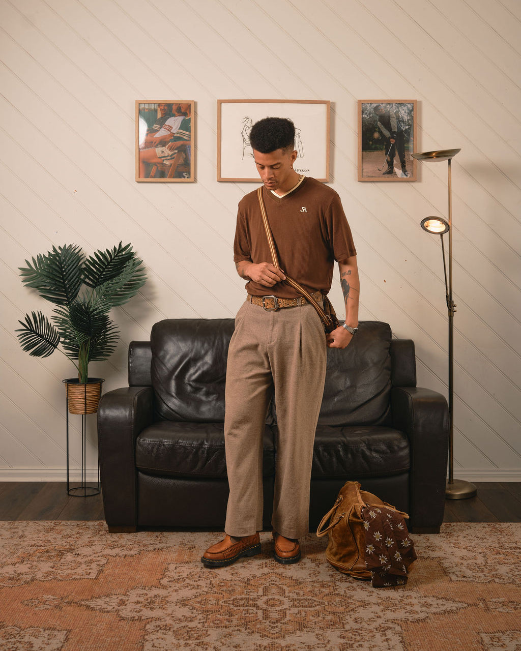 R.SPORT V-neck Short Sleeve Tee - Brown